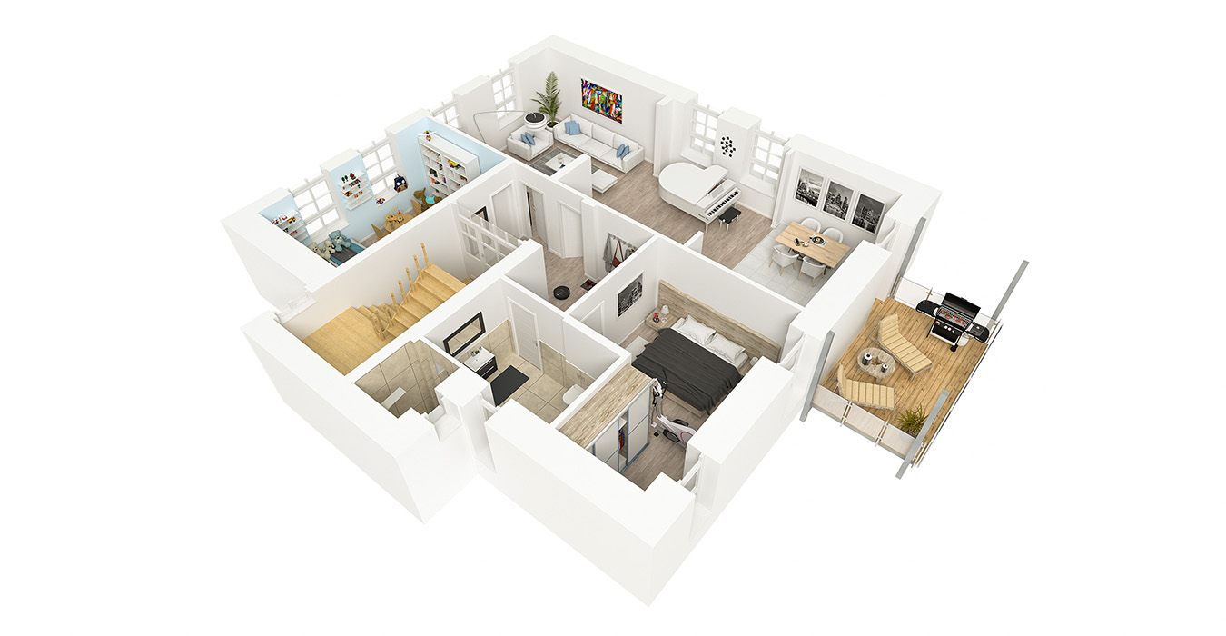 3D Grundrisse sind dreidimensionale Darstellungen herkömmlicher 2D Pläne, die Ihnen ermöglichen, sich eine Immobilie oder einen Raum in drei Dimensionen anzuschauen, und es spielt keine Rolle, ob es sich um eine Wohn-, Geschäfts- oder Industrieanlage handelt.